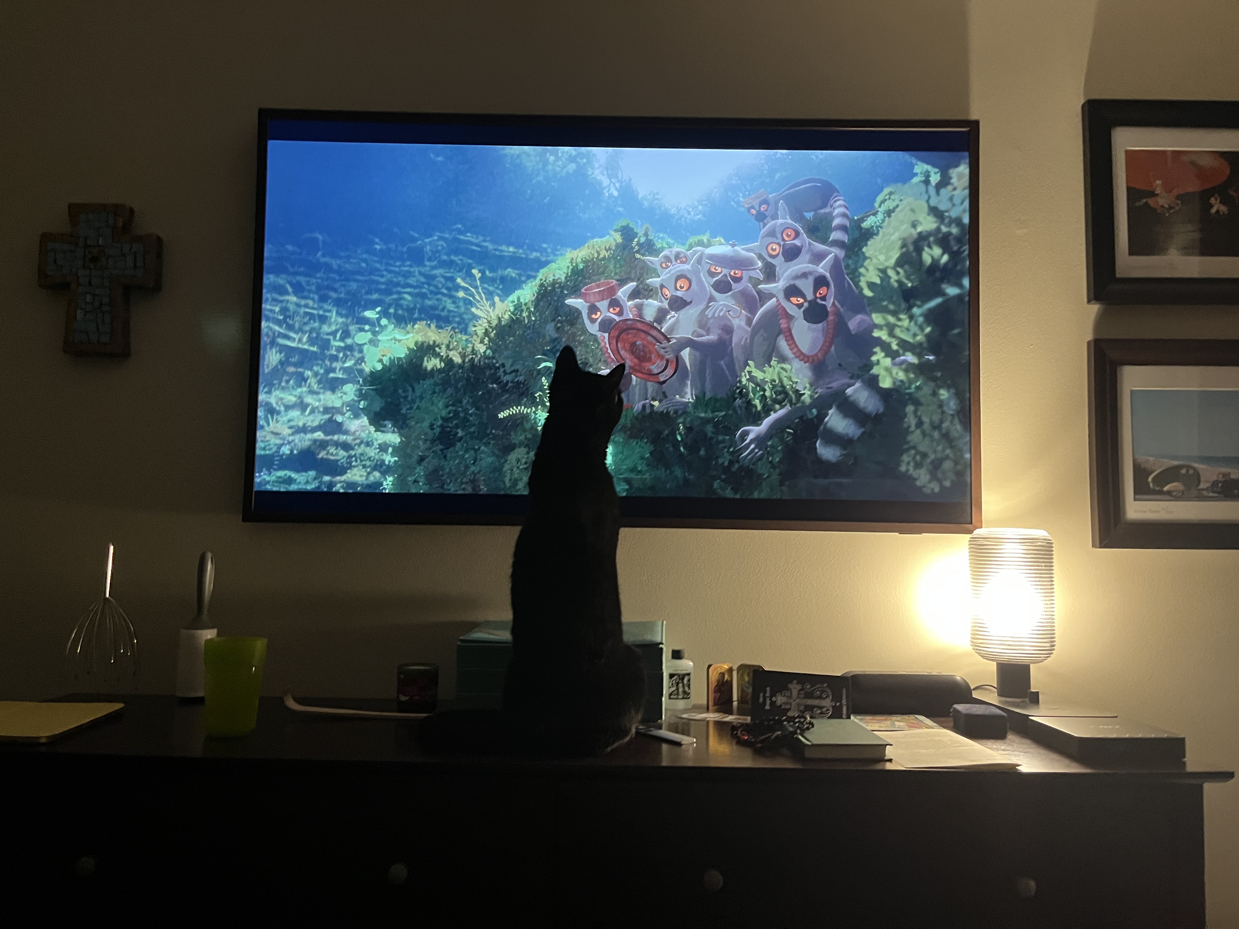 I read about the new animated film Flow recently and was sufficiently intrigued to rent it from Amazon when my youngest son and I were home by ourselves one night. I was impressed by the visuals and the well, flow, of the story, as a group of animals navigate their way through a mostly drowned world. I was drawn in to the main character, a black cat that reminded me of my own cat, Jonah. The film has no dialog, and you never learn the protagonist’s name, but my son and I kept calling him Jonah. He moved like Jonah, he displayed the same emotions as Jonah and he sounded exactly like Jonah.